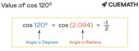 Cos 120 degrees in radians is written as cos (120° × π/180°), i.e., cos (2π/3) or cos (2.094395. How to use a cosine calculator. The cosine is encountered in geometry problems involving right triangles, circles, and. $$\cos{(x)}$$ masukkan nilai x (dalam.
